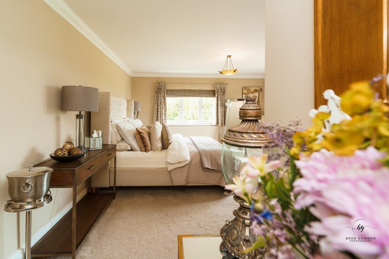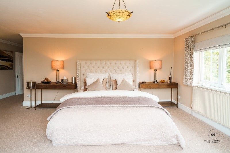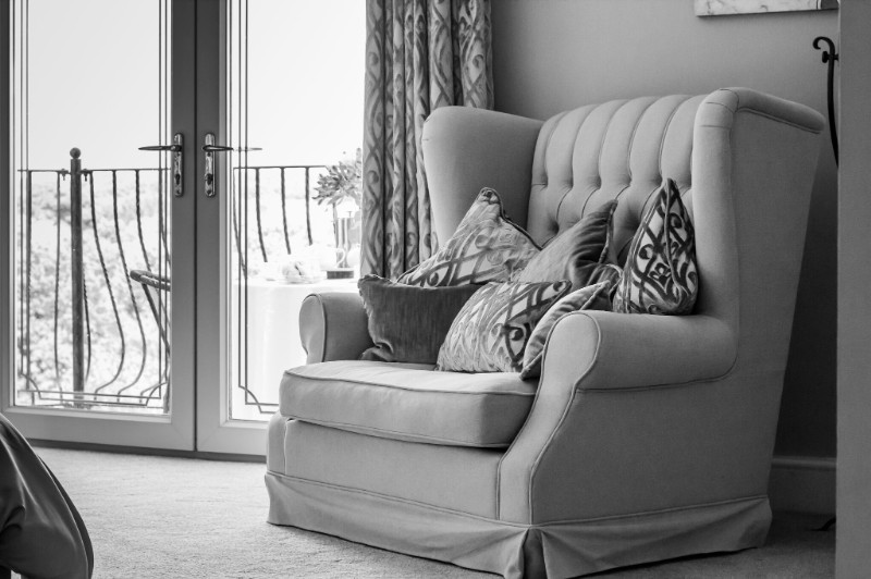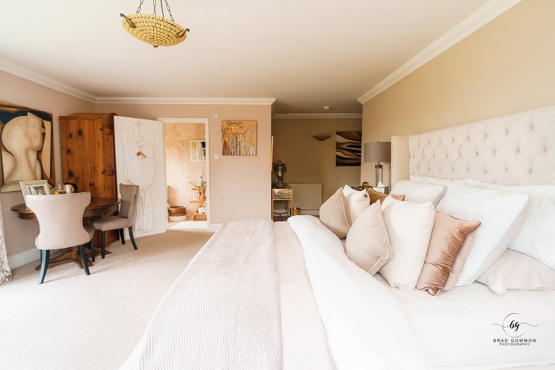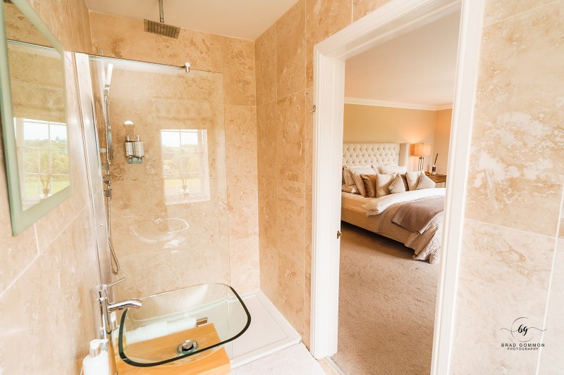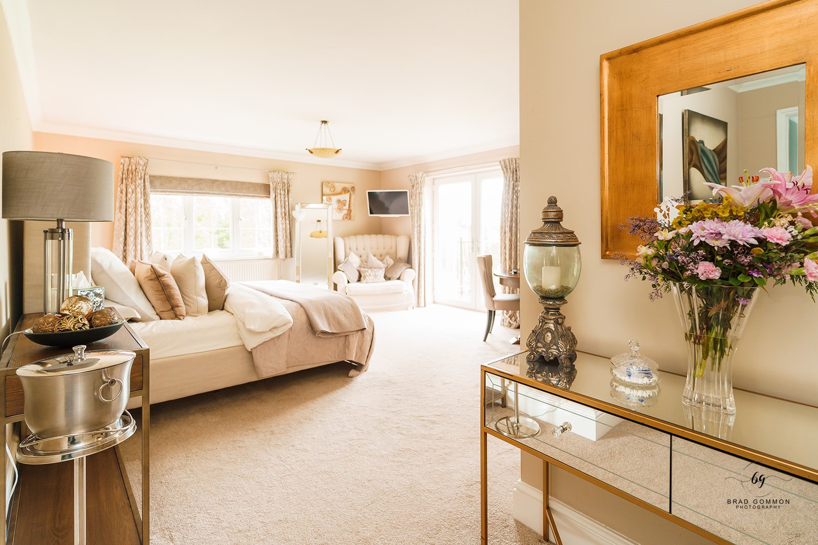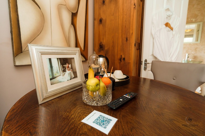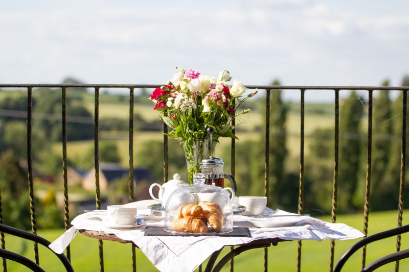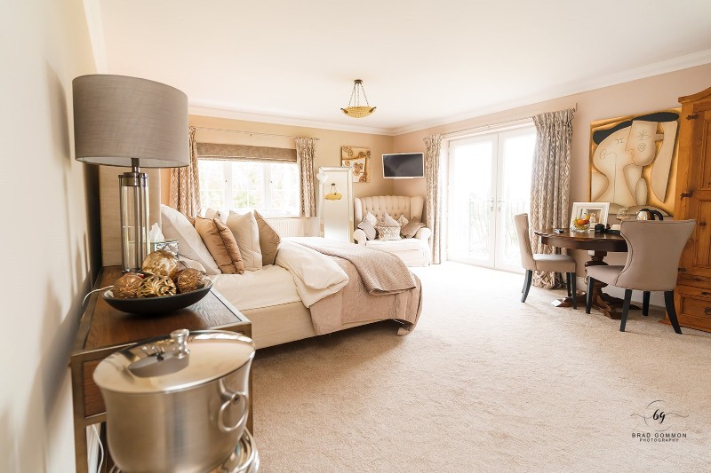 A large Superior Room with a Siper King Bed, seating area and en-suite facilities. A beautiful balcony overlooks the far-reaching rolling countryside.